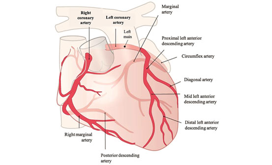 As shown in the above picture- Coronary arteries are seen in the fluoroscopy (x-ray). Images and videos taken to find presence of blockages and any other abnormality in the blood vessels of the heart.